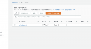 ホストゾーンが作成できたら、ダッシュボードのホストゾーン画面に戻るので、先ほど作成したドメイン名をクリックする。