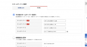 ドメインを管理しているサービスにアクセスし、ネームサーバの設定を、上記でメモしたサーバに変更します。下記はお名前.comの例