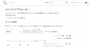 インスタンスの管理画面から、ネットワーキング → IPv4ファイアウォール の項目へと進み、ルールを追加 を選択し、アプリケーションでhttpsを選択したら作成を押します。
