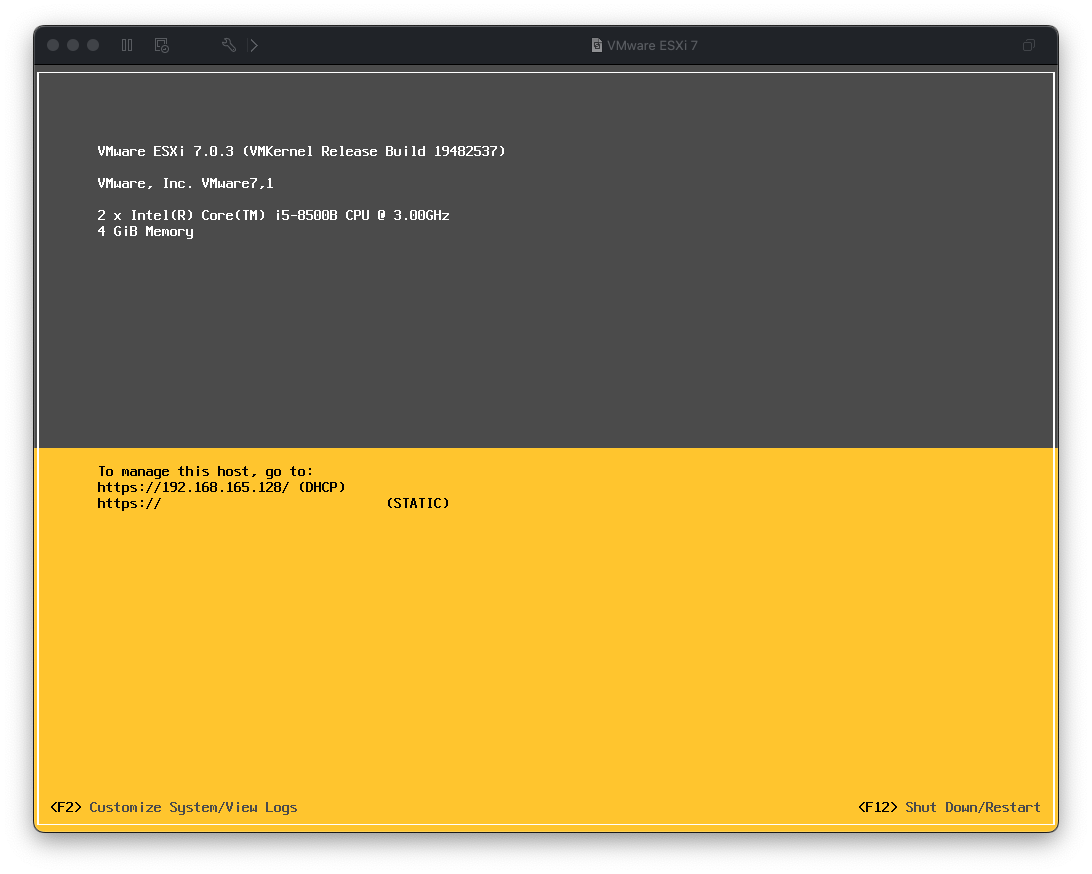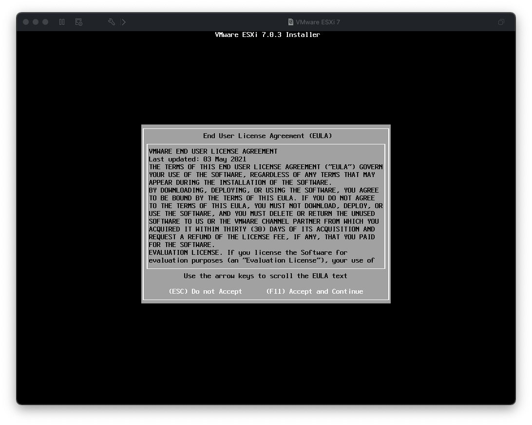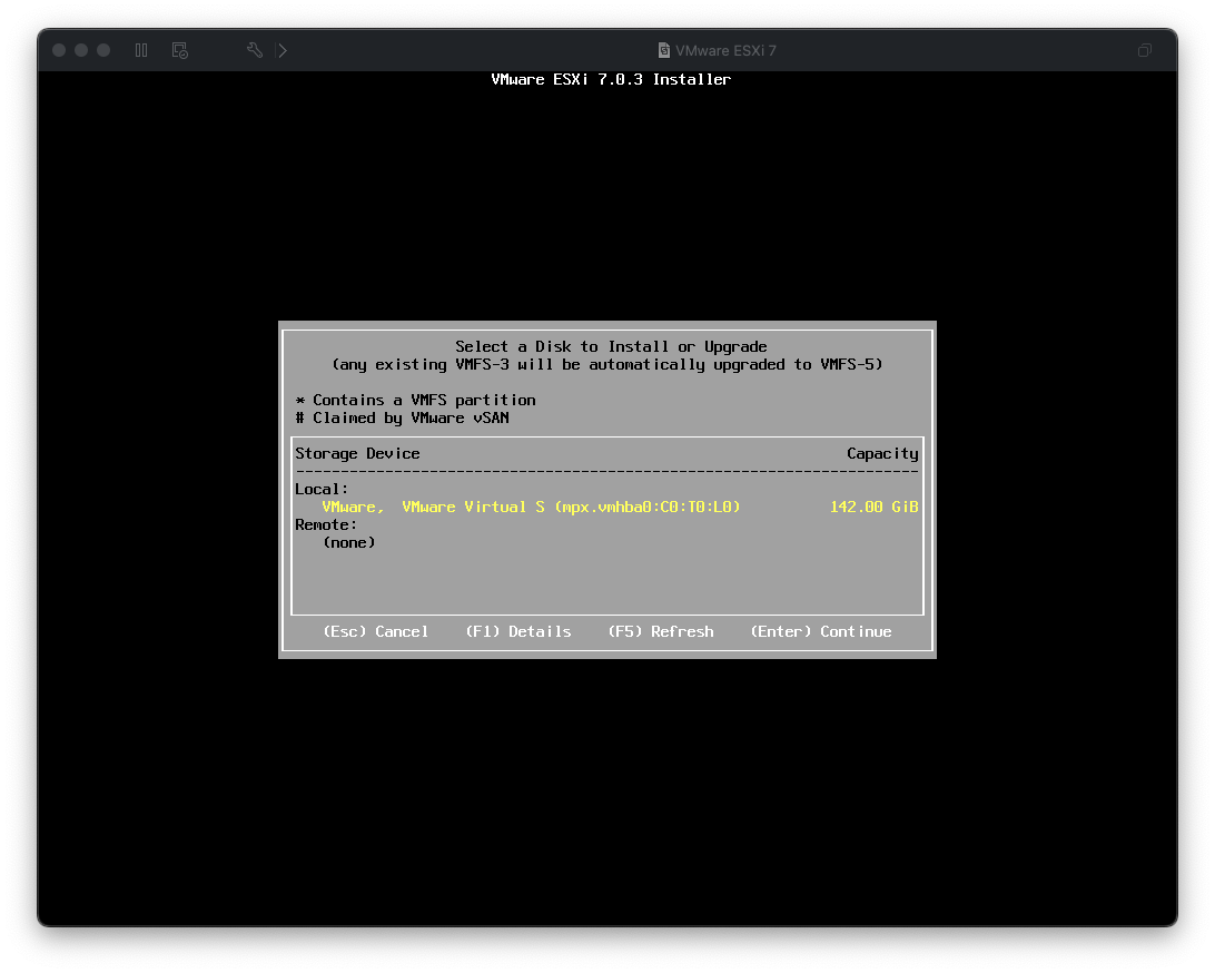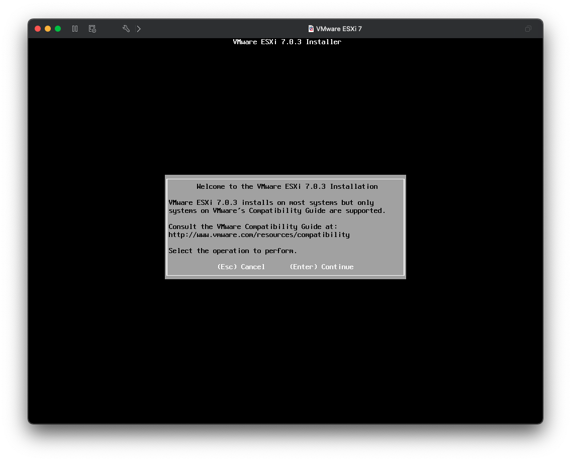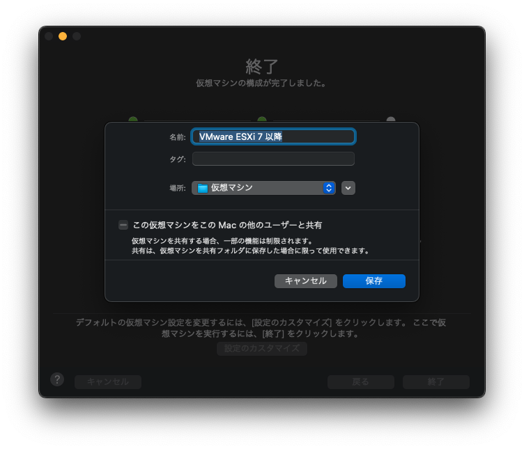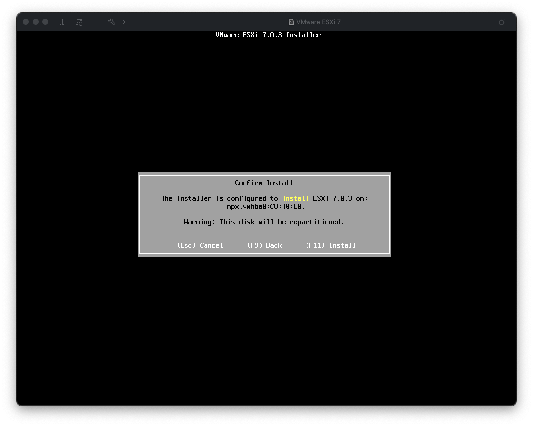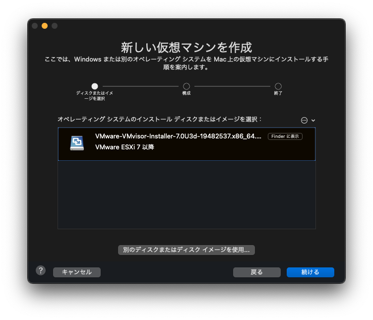 VMware FusionへのESXi 7.0インストール